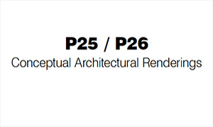 P25/P26 Project. The P25 concept plan includes 13,800 sq. ft. of ground floor, landscaped public space. The P26 concept plan includes 20,450 sq. ft. of ground floor, landscaped public space, including a 3,500 sq. ft. pocket park with shade from trees and a waterfall fountain feature.