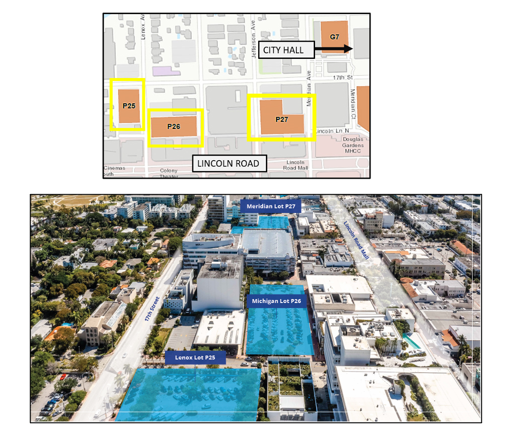The Projects sites are located in three (3) surface parking lots (P25, P26 and P27) one block north of the Lincoln Road Pedestrian Mall. The P25/P26 Project is located on two separate parcels on either side of Lenox Avenue: Parking Lot P25 is located at 1680 Lenox Avenue, and Parking Lot P26 is located at 1080 Lincoln Lane North. The P27 Project is located on Parking Lot P27 at 1664 Meridian Avenue.