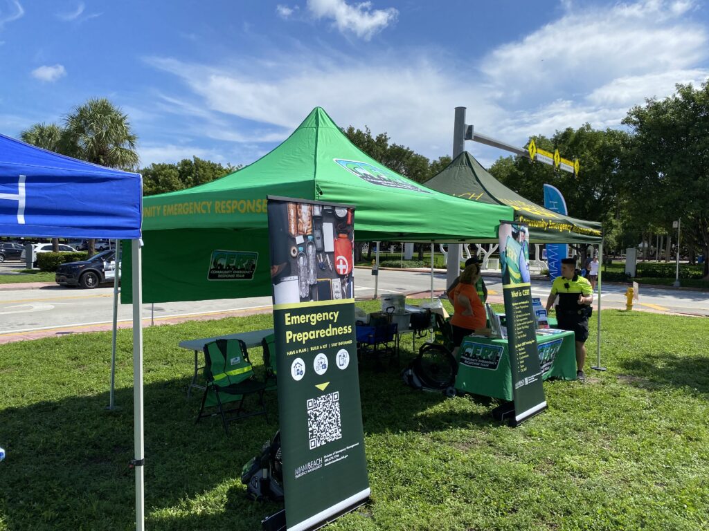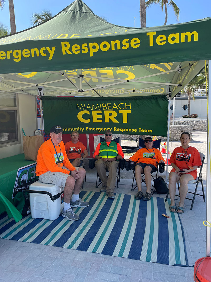 The Miami Beach Division of Emergency Management works with residents, homeowners associations, civic groups, nonprofits, faith-based organizations and houses of worship, and businesses to strengthen the level of emergency preparedness. Staff from the Division of Emergency Management as well as Community Emergency Response Team (CERT) volunteers are available to deliver emergency preparedness presentations to community organizations and homeowners associations, work with businesses/nonprofits and staff emergency preparedness exhibits at local events.