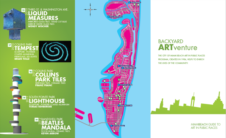 ADAADA Handbook – Title IIADA RequestAmericans With Disabilities ActBeach Wheelchair AccessComplaints For DiscriminationDifficulty Of HearingDisability EtiquetteDisability Hiring PolicyWhite Cane Law Backyard ARTventure The City of Miami Beach art in public Places Program, created in 1984, guides you to art in public places in our community. Backyard ARTventure is a map for children and families to explore art in Public Places. Upcoming Events Click here for an interactive map of ART OUTSIDE