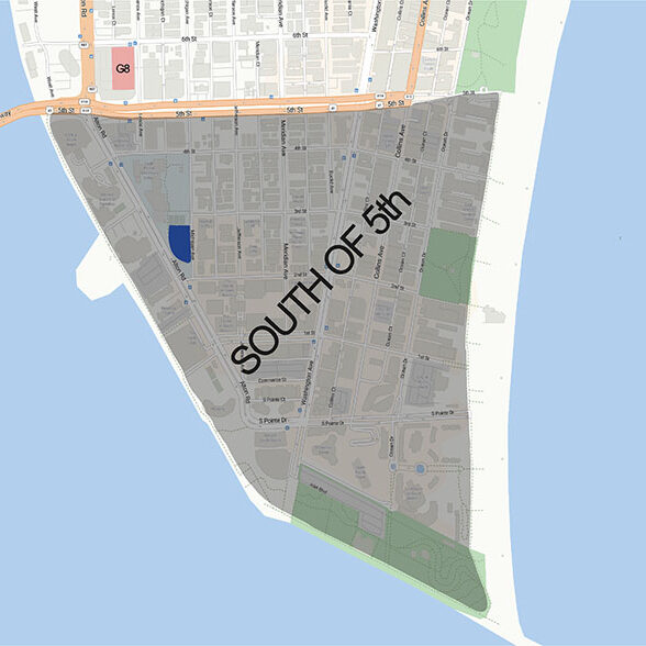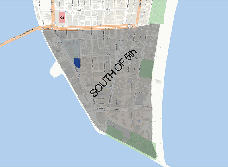 North-South boundaries: From Fifth Street to South Pointe Drive
