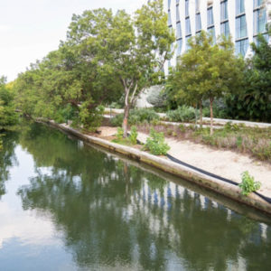 Enjoy three acres of landscaped walking paths that feature a self-guided walking tour of Art in Public places on the north side of the Miami Beach Convention Center. Walk along a path lined with sculptures by Dutch artist Joep van Lieshout, or simply sit on one of several benches throughout the park with a view of the canal.Â