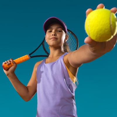 This one-hour class is designed to introduce tennis as a fun sport to children aged 8-12. Students learn forehands, backhands, and volleys as well as scoring and parts of the court. Quickstart format is used that enables students to learn more control of the ball through the use of low-compression green tennis balls and full-size nets. Classes are offered every weekday.