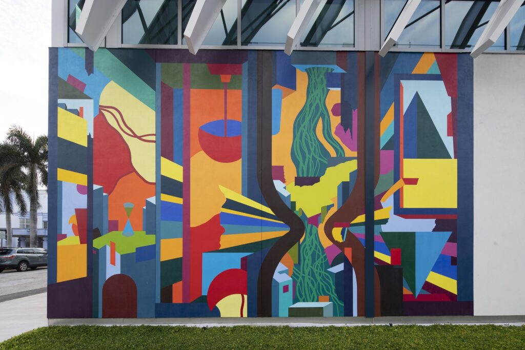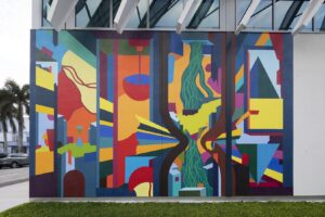 About Sand extends from Ackermann’s long-running “Mental Maps” series. The “Mental Maps” series combines the factual precision of traditional street maps with the artists’ own interpretation of the local environment. Rendered in vibrant colors and abstracted forms of sand, hourglasses and roadways, About Sand is his impressions of the city’s tourism industry, commerce, urbanism and daily life.
