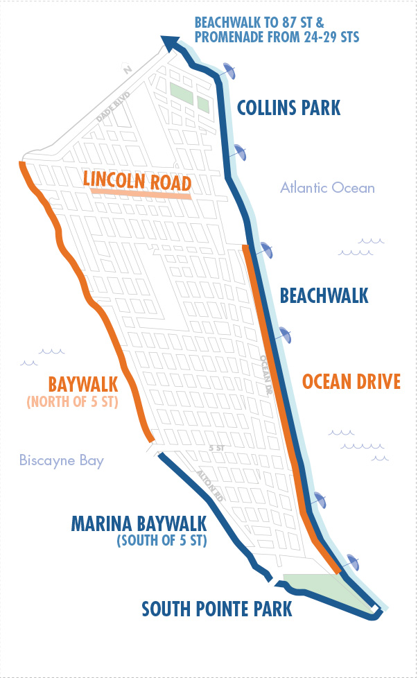 Bisiklèt yo otorize sou Lincoln Road soti 2è dimaten pou rive 9è dimaten.