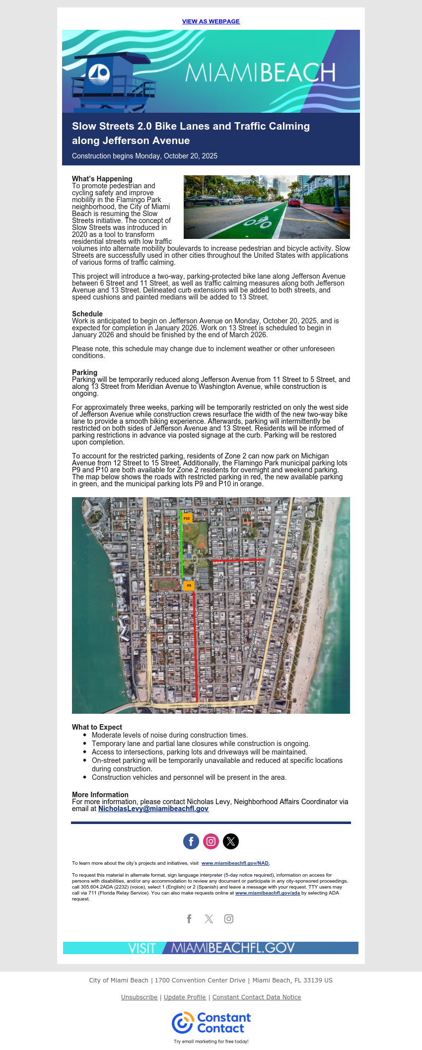 Vil Miami Beach pral aplike Plan Flamingo Park Neighborhood Slow Streets 2.0 la an kowòdinasyon avèk Konte Miami-Dade ak kominote a. Travay sa a pral bati sou plan ki te kòmanse an 2020 kòm yon pati nan premye vèsyon Slow Streets la ak Plan Direktè pou Bisiklèt ak Pyeton Vil la.