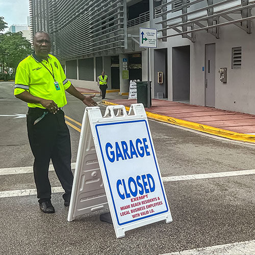 A $100 flat fee parking rate will be in effect for visitors at the Sunset Harbour Garage on 19 Street and Bay Road (G10) and the 42 Street garage between Royal Palm and Sheridan avenues (G6). If parking in the Sunset Harbour or 42 Street garages, residents and employees must drive to the exit lanes and use the blue box to pay and present proof of residency/employment. Please ask an attendant for assistance if needed.
