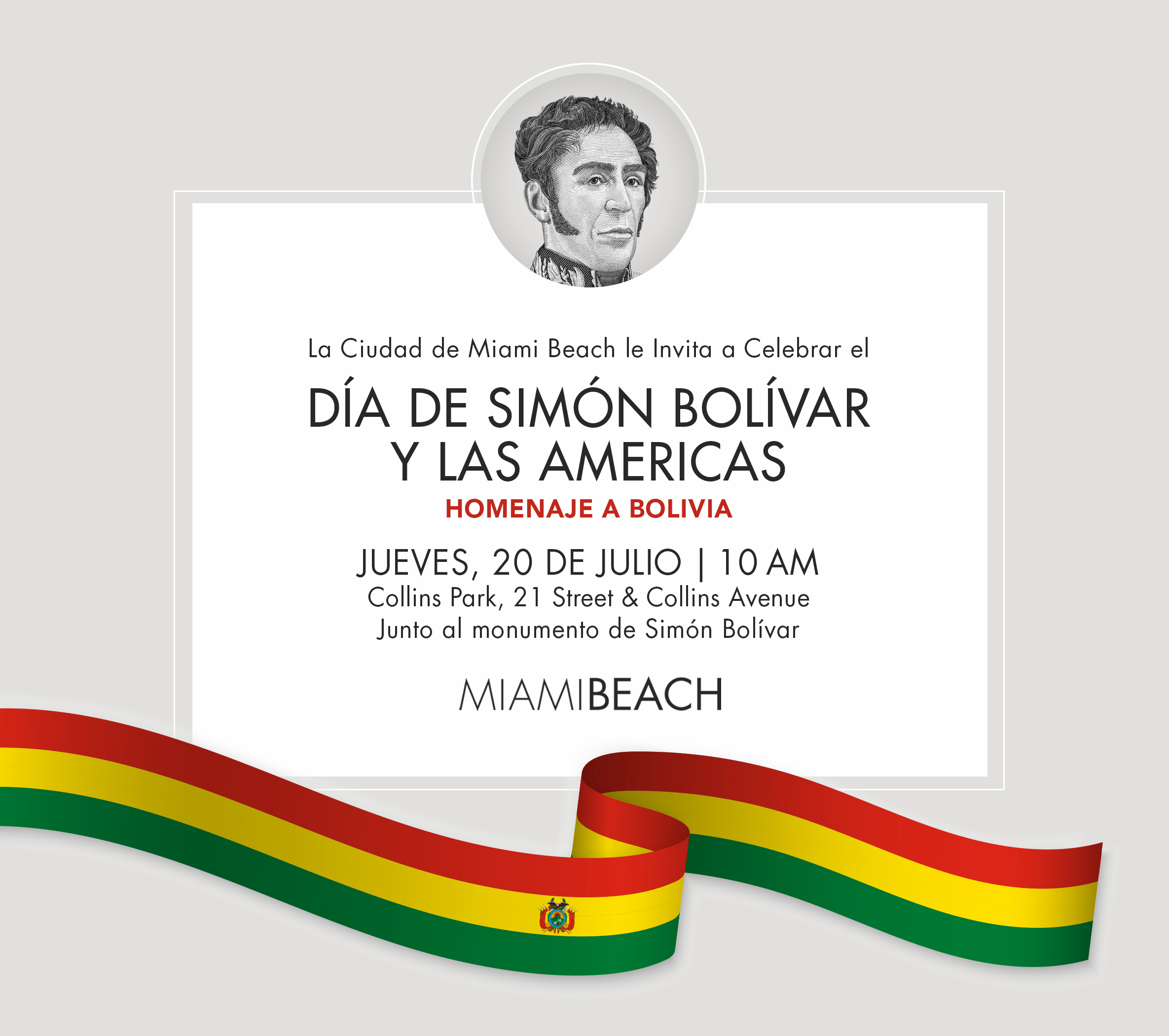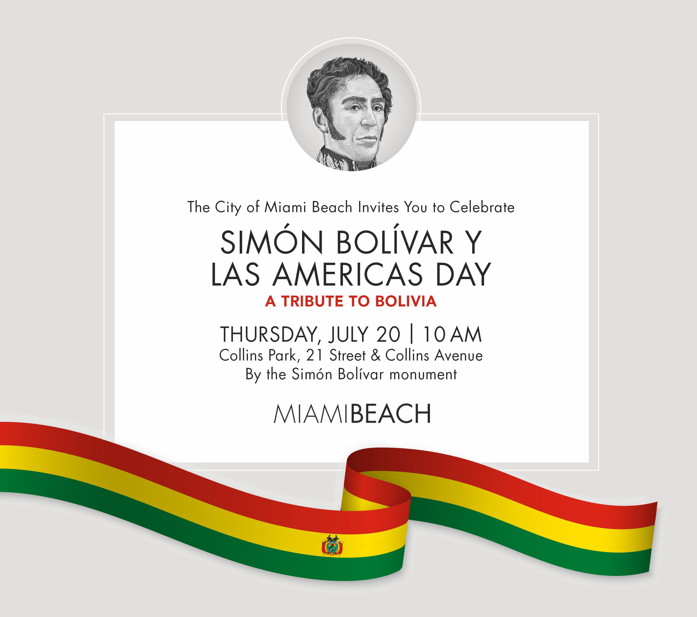 Join the City of Miami Beach for its fifth annual celebration of Simón Bolívar y Las Americas Day on Thursday, July 20, 2023 at 10 a.m. Bolivar was born on July 24, 1783 in Caracas, Venezuela and his accomplishments are celebrated throughout Latin America.