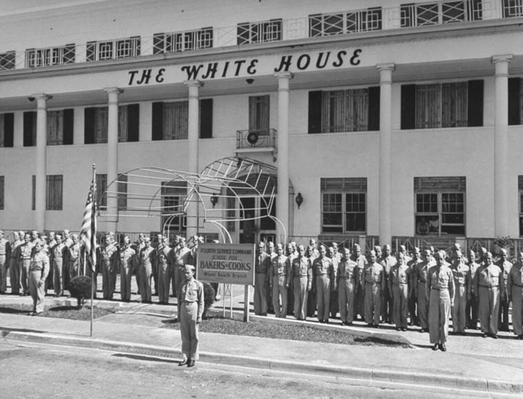 Miami Beach served as a base for training headquarters of the then Army Air Forces Technical Training Command, with many municipal properties and hotels repurposed for the war effort.