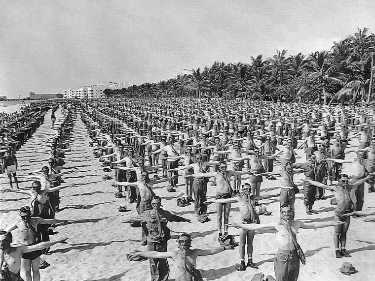 When the U.S. Air Corps Training School in Miami Beach opened in February of 1942, it was one of the largest training centers and officer candidate schools anywhere in the U.S. Up to a quarter of the officers and a fifth of all enlisted men of the entire Army Air Forces were trained in Miami Beach.