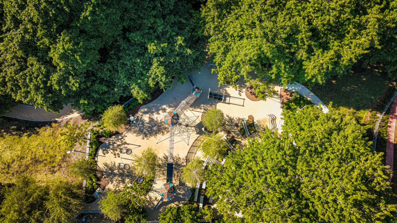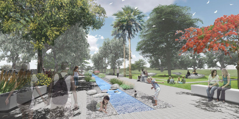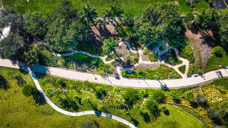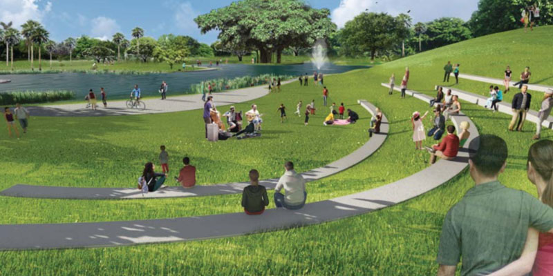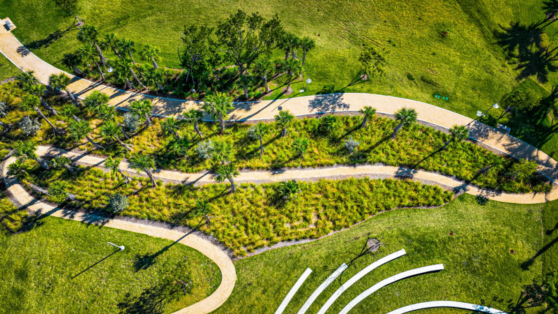 Designed with resilient components, Bayshore Park incorporates a central lake for stormwater retention, pervious pavement, and motion‑censored walkway lighting, among other resiliency enhancements. The project also included the replacement of the large water and sewer lines traversing through the park, ensuring long‑term infrastructure reliability.