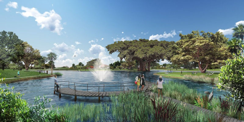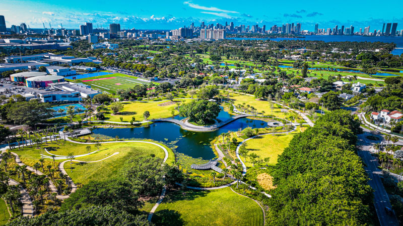 The 19.4-acre former Par 3 Golf Course at 2530 Pine Tree Drive has been transformed into Bayshore Park, a passive park for Miami Beach residents to enjoy. The completed park features environmental remediation, a central lake with boardwalks, a pavilion, six tennis courts, restrooms, a children’s playground, dog park, jogging trail and pathways, a fitness cluster, butterfly garden, linear water feature, parking lot, walkway lighting, and security camera systems.