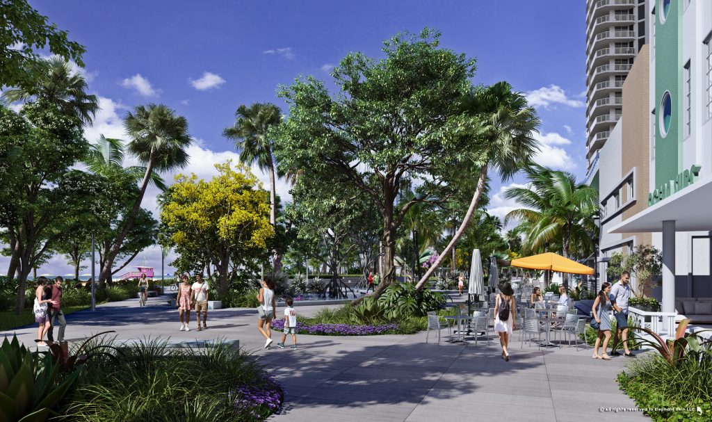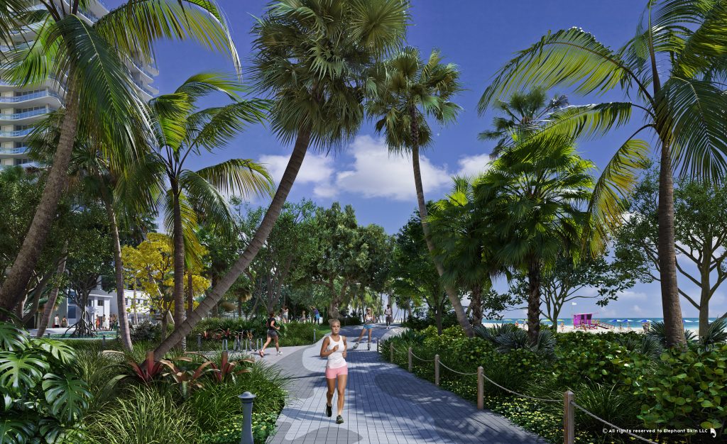 The Raymond Jungles designed project will be a key destination in North Beach and will link existing greenspaces to the north and south along a section of the renovated Beachwalk. Ocean Terrace Park will be a pedestrian-only sanctuary where the public can immerse themselves in the natural world within an urban setting. The park will include open public spaces and water features that will integrate seamlessly into lush plantings inspired by native dune vegetation.