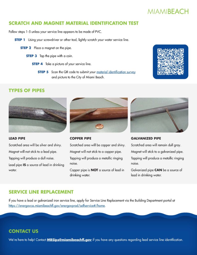 The Environmental Protection Agency (EPA) passed the Lead and Copper Rule Revisions (LCRR) effective December 16, 2021 with a compliance deadline of October 16, 2024. The LCRR main goal is to further reduce the risk of lead exposure in all communities within the United States. The LCRR main components include the development of a water service line inventory, lead service line replacement plan, and an updated compliance sample plan which includes schools and childcare facilities. The water service line inventory includes both public and private side and shall be made available to the public via a website. Identifying out-of-date materials, including lead, is the first step toward eliminating them from the distribution system. More information can be found below.