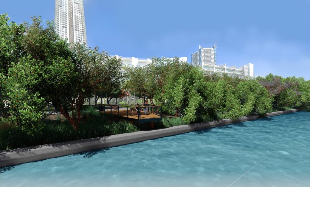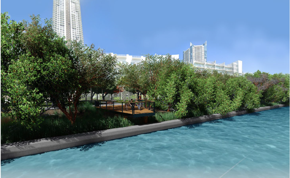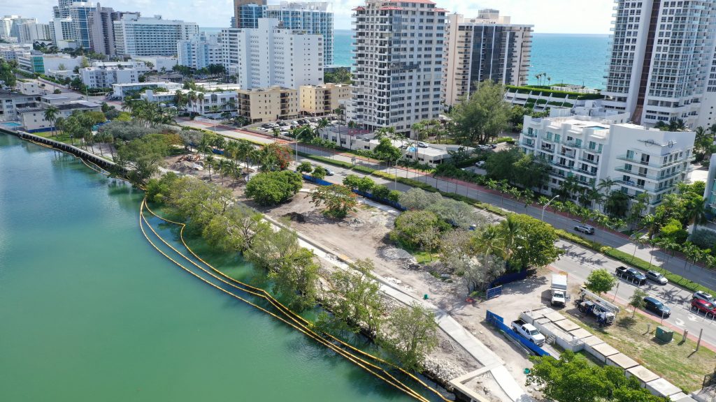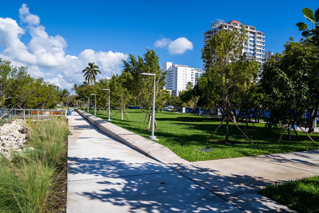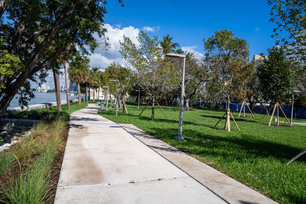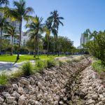 With cooperation from The Nature Conservancy and with support from Florida Power & Light Company through its charitable arm the NextERA Energy Foundation, the project will be the City’s second hybrid design that incorporates a living shoreline into a structural seawall. The structural seawall rehabilitated as a part of an earlier construction phase of the project was designed to protect several existing mangroves and create new coastal habitat. The current construction phase of the project includes the planting of more mangroves and other native wetland vegetation while removing invasive or exotic vegetation along the waterfront, and planting additional native shade trees including green buttonwood, gumbo limbo, and pitch apple in upland areas of the park.