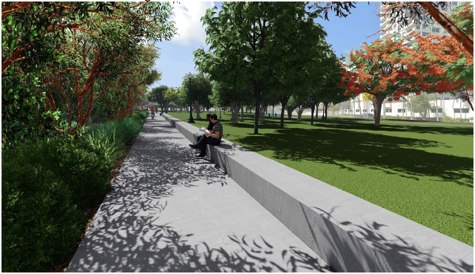 The Brittany Bay Park and Living Shoreline project is designed to increase our city’s greenspace, protect the local community from storms and flooding, and reduce urban heat, all while providing vital natural habitat and improving water quality in Biscayne Bay through the use of nature-based solutions. Nature-based solutions can be defined as the sustainable management and use of nature for tackling challenges such as climate change, water and food security, biodiversity protection, human health, and disaster risk management. This project renovates Brittany Bay Park and constructs a new living shoreline with an overlook deck that will connect park users to the water’s edge. The project includes improved pathways, new exercise equipment, site furniture, and new pedestrian lighting shall enhance visibility throughout the park. Additional trees and other landscape features will also be planted throughout the park to boost biodiversity and promote neighborhood resilience.